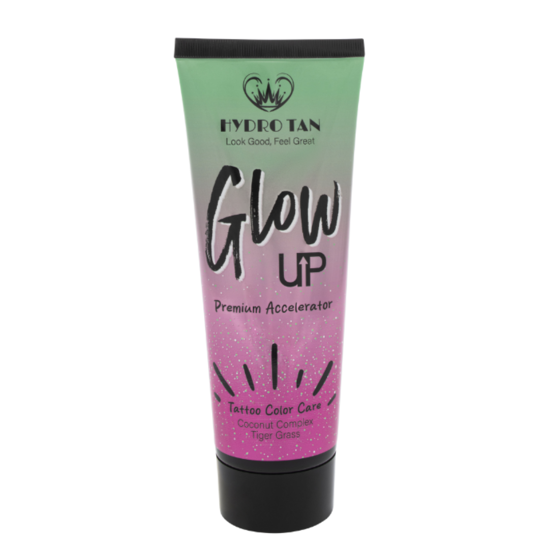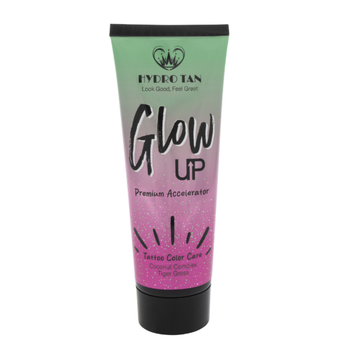 Hydrotan Glow Up is a bronzer-free tanning accelerator that enhances melanin production for a natural glow. Infused with tyrosine, tiger grass, panthenol, and vitamin E, it hydrates, soothes, and improves skin texture. Antioxidants and skin-repairing agents deliver anti-aging benefits. Ideal for all skin types seeking a radiant, even tan. For indoor sunbed use only; not a sunscreen.