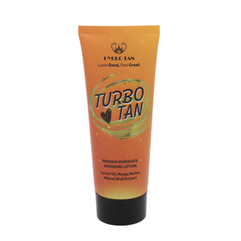 Hydrotan Turbo Tan is a fast-acting tanning accelerator with an immediate bronzing effect from caramel, walnut, and carrot oil. L-tyrosine boosts melanin for deeper tans, while collagen-supporting vitamin C and firming agents like caffeine and guarana enhance skin tone. Enriched with mango butter, kukui oil, and green tea, it hydrates and protects. For indoor tanning use only.