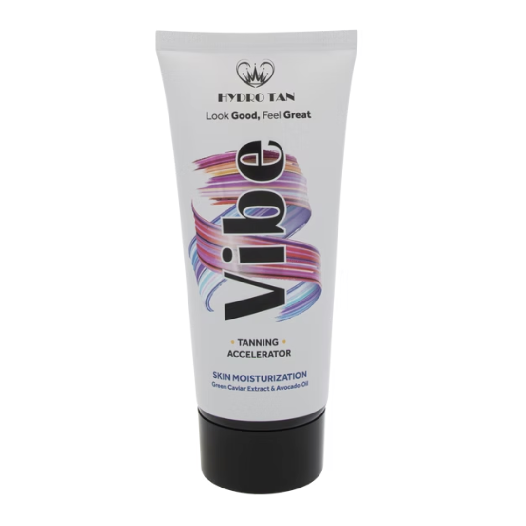 Hydrotan Vibe is a bronzer-free tanning accelerator enriched with L-tyrosine and a melanogenesis complex to promote a deep, long-lasting tan. With green caviar, avocado oil, vitamin E, and green tea, it hydrates, soothes, and provides anti-aging protection. Lightweight and non-sticky, it's ideal for users seeking natural tanning with skincare support. For sunbed use only.